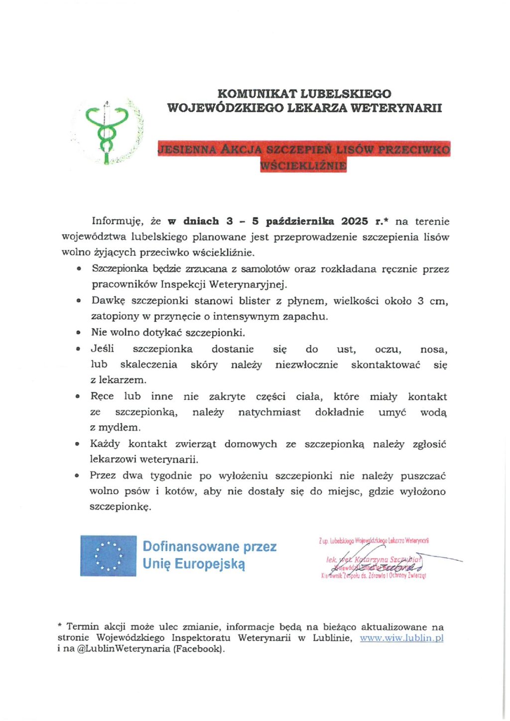 2. Jesienna akcja szczepień lisów przeciwko wściekliźnie
