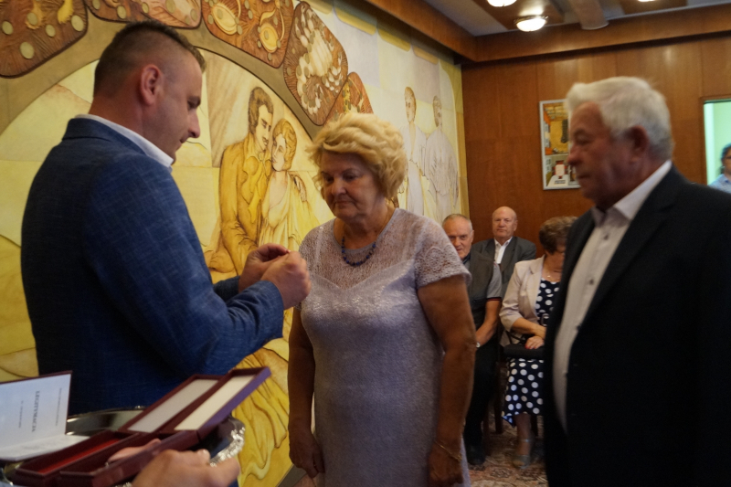 Jubilaci zostali odznaczeni przez Prezydenta Rzeczpospolitej Polskiej Medalami, które stanowią dla nich nagrodę za przeżycie 50 lat w jednym związku małżeńskim. Aktu dekoracji dokonał Burmistrz Miasta Marcin Sentkiewicz. Dostojne Pary otrzymały pamiątkowe grawery i kosze słodyczy. Burmistrz Miasta życzył Jubilatom zdrowia, radości, dalszych zgodnych, pomyślnych i długich wspólnych lat życia oraz doczekania w szczęściu kolejnych jubileuszy.
